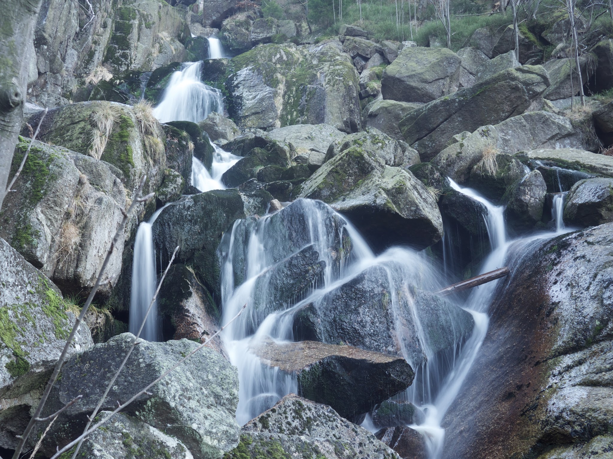 Ořešník před námi! Stoupáme po žebříčkách a… „Jéééé, to je nádherný výhled!“ Kocháme se jarními výhledy na krajinu a zabubáni před větrem si dáváme malou obědopauzu. S bříškem jako v pokojíčku si to štrádujeme dál po hřebeni a nebyli bychom to my, abychom po cestě neprovedli ňákou lumpárnu. Průzračný potůček s ještě průzračnější tůňkou nás lákaly k pořádné zimní koupačce. „Pojďte do toho taky!“ nadšeně s Martinem voláme. Tom se nenechal dlouho přemlouvat, Kristy se nám nakonec hecnout nepodařilo. Ale co už. Rychle vysvlíct, hop a skok. „Aaa, to je studený!“ Ale ten pocit potom za to stojí! To úžasné hladivé teplo, které se rozlije do celého těla, když vylezete a oblečete se…